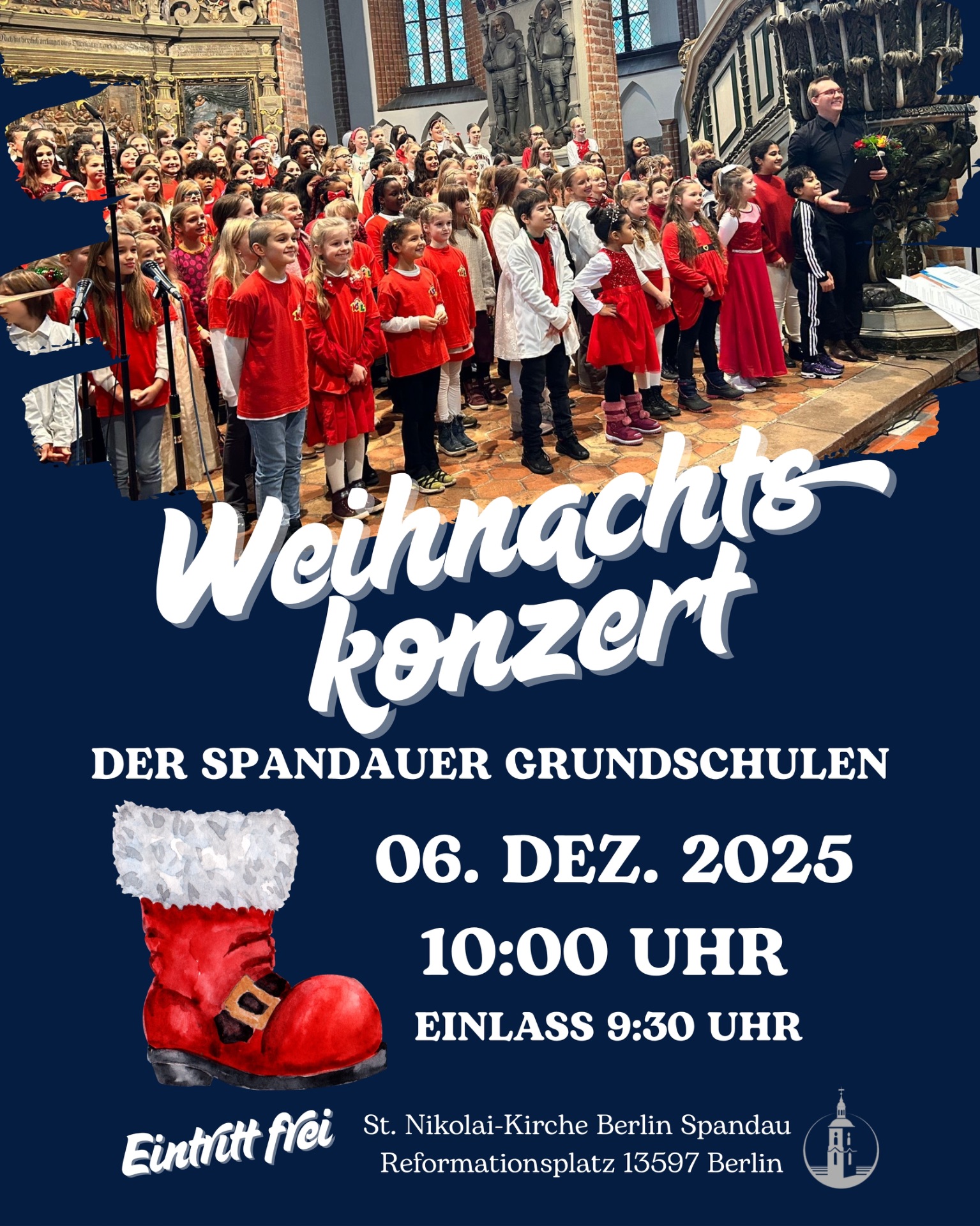 Unter der musikalischen Leitung unseres Musiklehrers Manuel Nieke gestaltet der große Chor der Spandauer Grundschulen ein vielfältiges Nikolausprogramm mit mehrsprachigen Liedern, einem Kanon und besonderen musikalischen Momenten. Ein festliches Erlebnis für alle Beteiligten und Gäste!